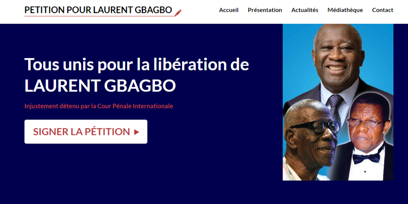 Outre la signature physique, les initiateurs ont crée un site internet pour les signatures virtuelles : www.PourGbagbo.com